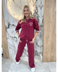 Komplet dresowy z kołnierzykiem to idealne połączenie sportowej wygody i modnego designu. Zestaw składa się z bluzy o luźnym kroju z delikatnym haftem oraz spodni z prostą nogawką, co razem tworzy stylowy, a zarazem komfortowy look.