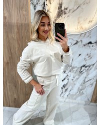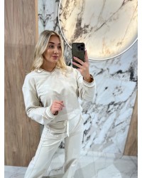 Komplet świetnie sprawdzi się w codziennych stylizacjach, na spacery, wyjazdy czy leniwe dni w domu. Można go nosić razem lub tworzyć z jego elementów różne casualowe zestawy. To modny wybór dla osób ceniących styl i komfort w jednym.