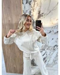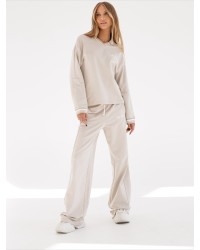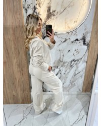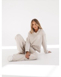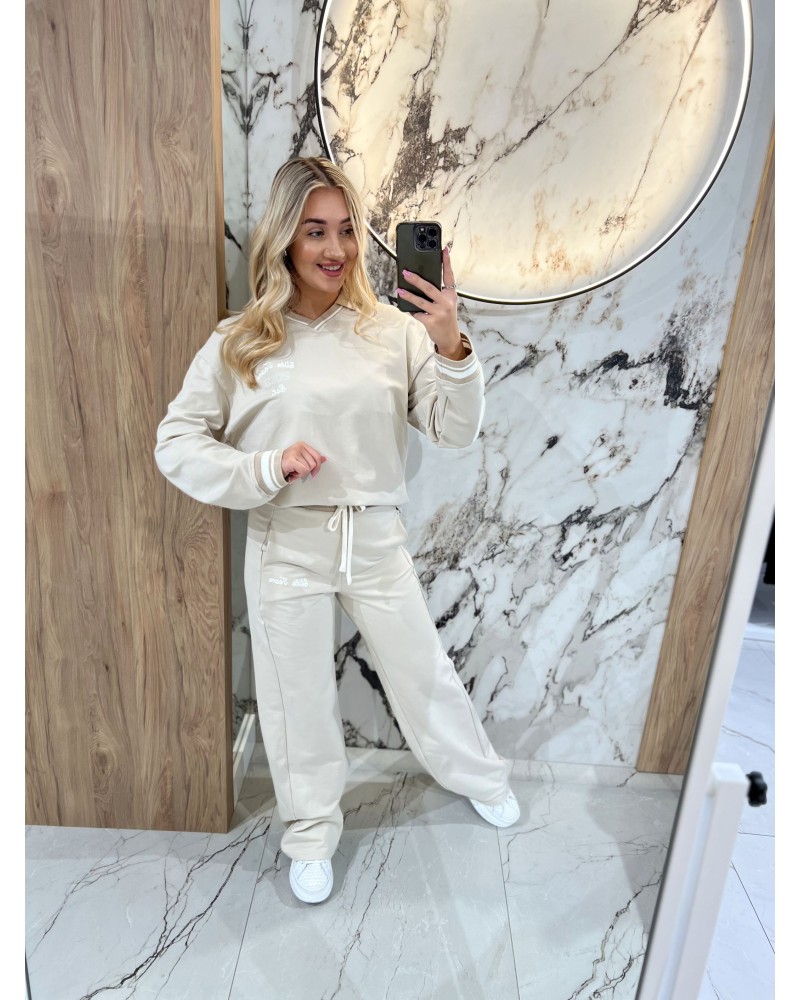 Komplet dresowy z kołnierzykiem to idealne połączenie sportowej wygody i modnego designu. Zestaw składa się z bluzy o luźnym kroju z delikatnym haftem oraz spodni z prostą nogawką, co razem tworzy stylowy, a zarazem komfortowy look.