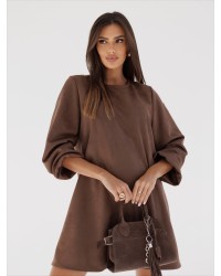 Stylowa sukienka o minimalistycznym kroju to idealna propozycja dla kobiet ceniących elegancję i wygodę w jednym. Model z długim rękawem i delikatnie zaokrąglonym dekoltem doskonale podkreśla sylwetkę, jednocześnie zapewniając swobodę ruchów i komfort noszenia przez cały dzień.