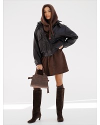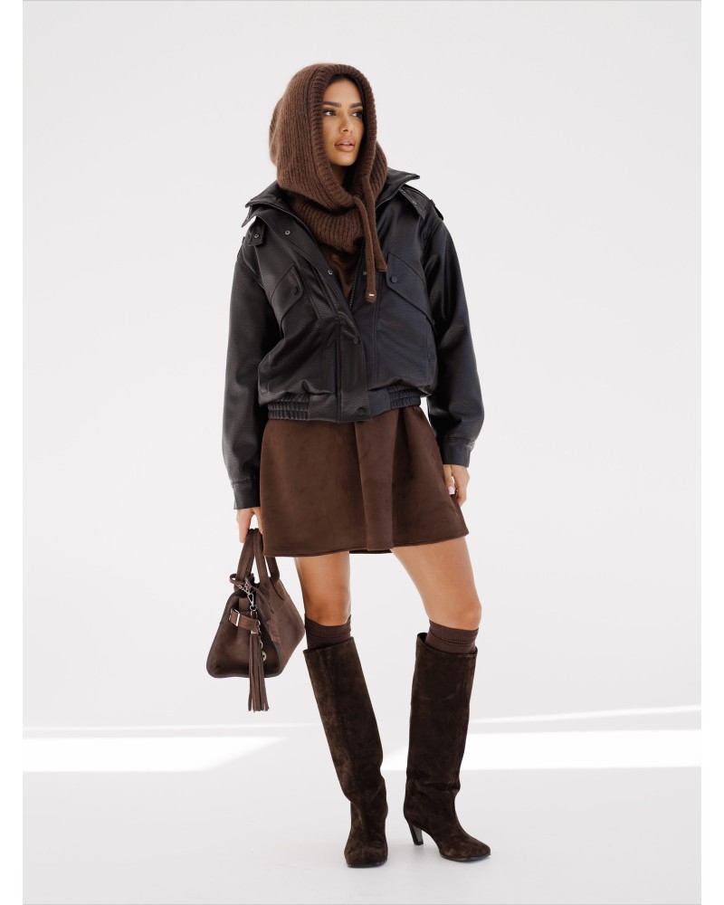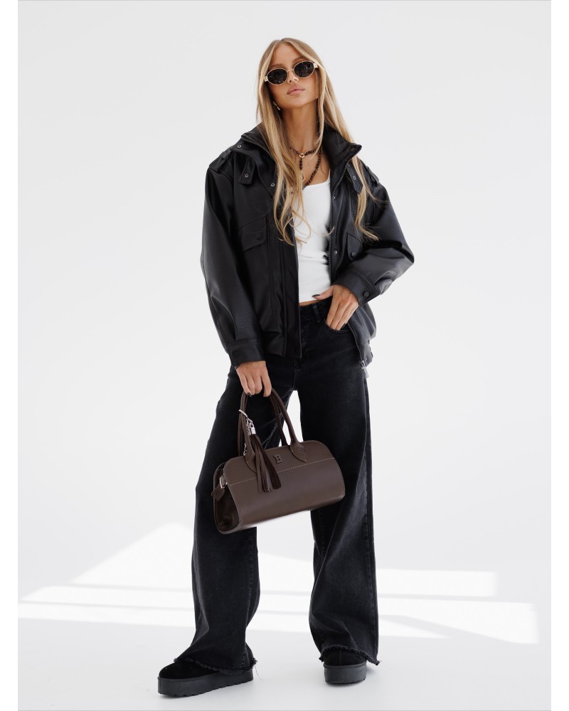 Stylowa kurtka o klasycznym kroju wykonana z wysokiej jakości materiału imitującego skórę. Wyposażona w praktyczne kieszenie i stójkę z zapięciem. Idealna propozycja dla miłośników ponadczasowych, eleganckich fasonów.