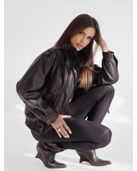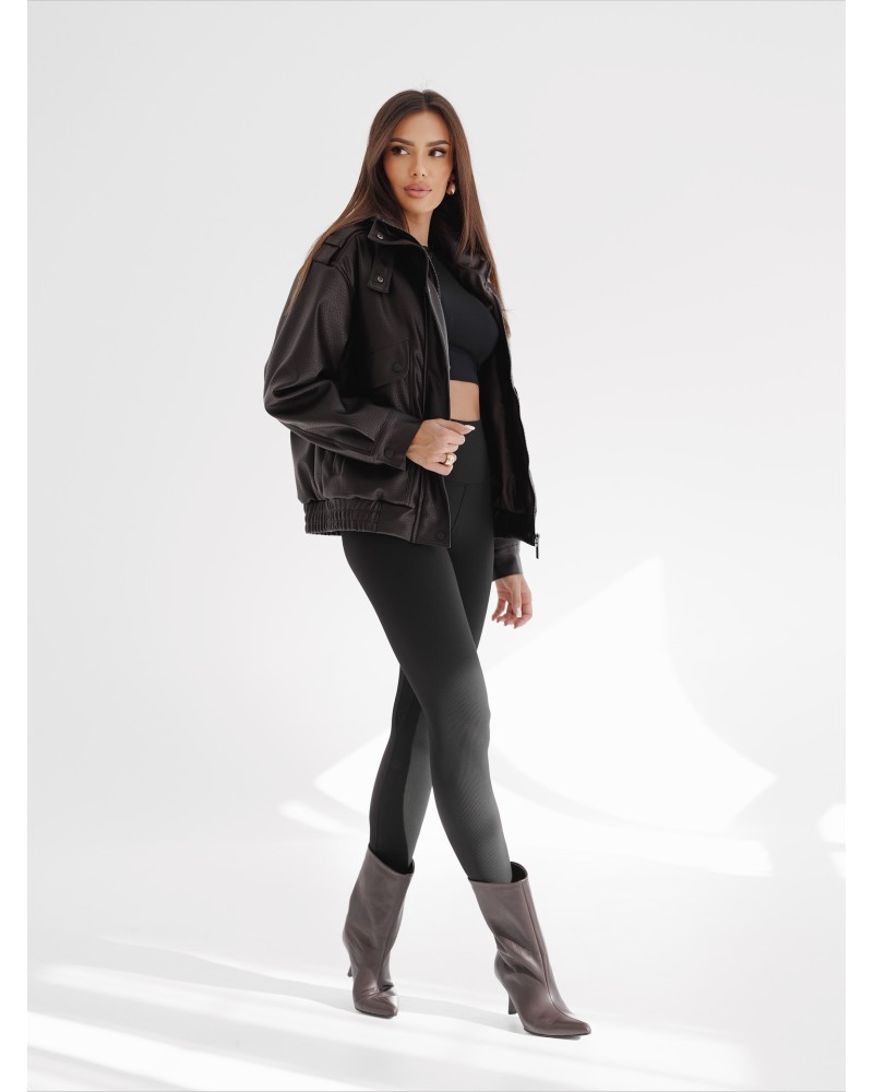 Stylowa kurtka o klasycznym kroju wykonana z wysokiej jakości materiału imitującego skórę. Wyposażona w praktyczne kieszenie i stójkę z zapięciem. Idealna propozycja dla miłośników ponadczasowych, eleganckich fasonów.