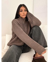 Stylowy sweter o grubym splocie z luźnym fasonem. Wykonany z miękkiej, przyjemnej w dotyku dzianiny, idealny na chłodniejsze dni. Modny i ponadczasowy model, który doskonale uzupełni każdą stylizację.