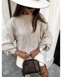 Stylowy sweter o grubym splocie z efektownym wzorem warkoczy. Luźny fason zapewnia komfort i swobodę, a miękka dzianina doskonale sprawdza się w chłodniejsze dni. Idealny do codziennych, jesienno-zimowych stylizacji.