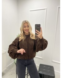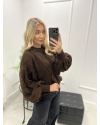 Stylowy sweter o grubym splocie z efektownym wzorem warkoczy. Luźny fason zapewnia komfort i swobodę, a miękka dzianina doskonale sprawdza się w chłodniejsze dni. Idealny do codziennych, jesienno-zimowych stylizacji.