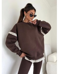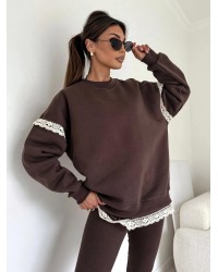Bluza o luźnym kroju z delikatnym koronkowym wykończeniem. Połączenie sportowego stylu z kobiecym akcentem sprawia, że model jest wyjątkowy i idealny zarówno na co dzień, jak i na casualowe wyjścia.