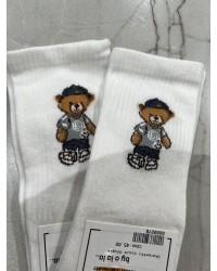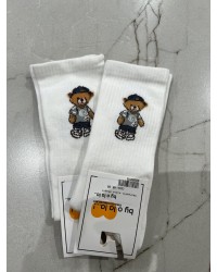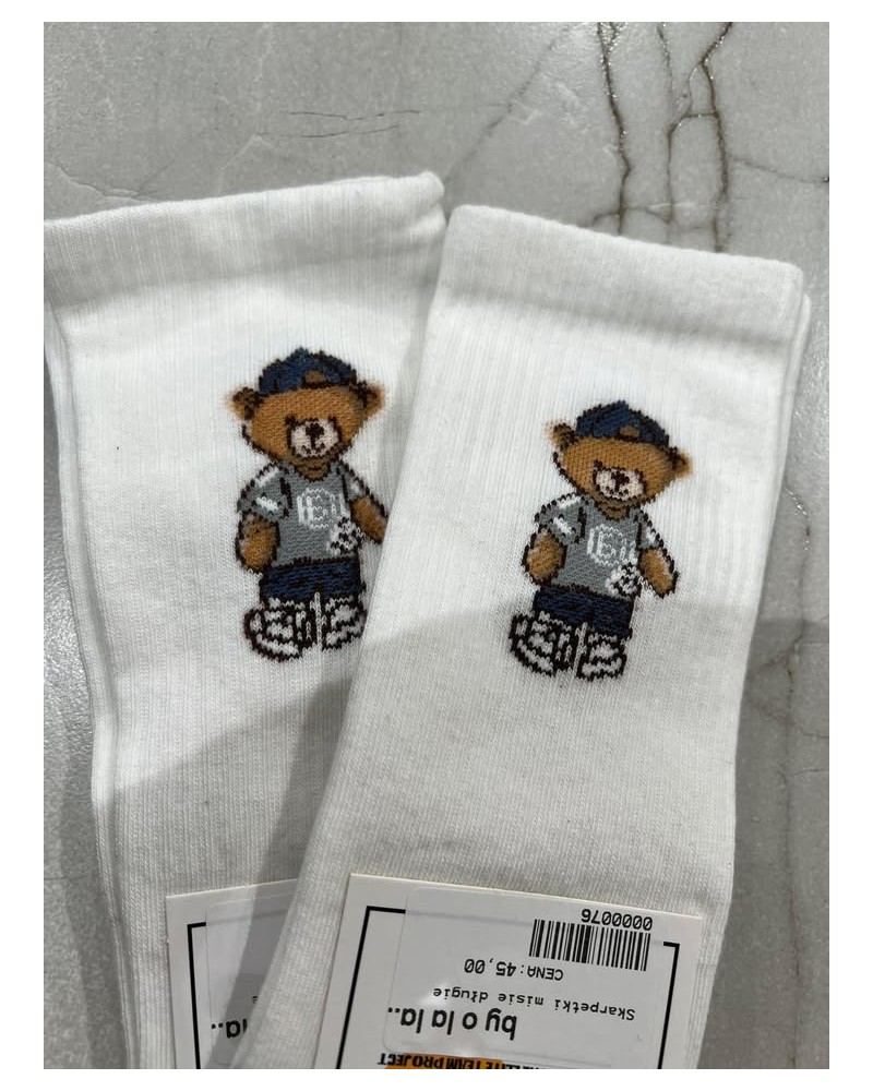 Białe skarpetki z uroczym haftem misia 🐻 – modny i zabawny dodatek.