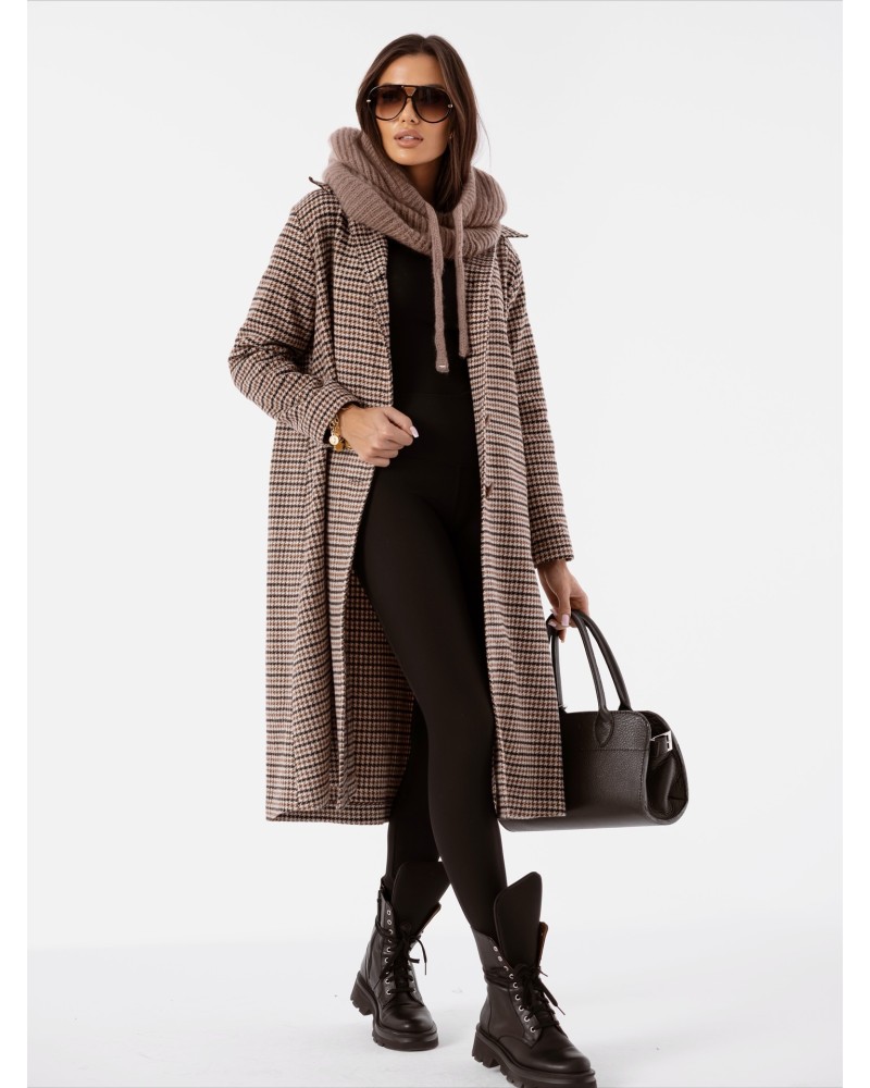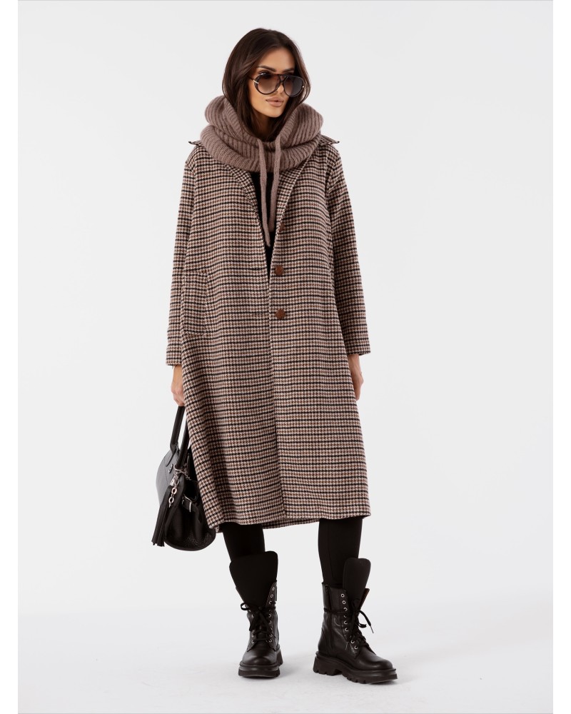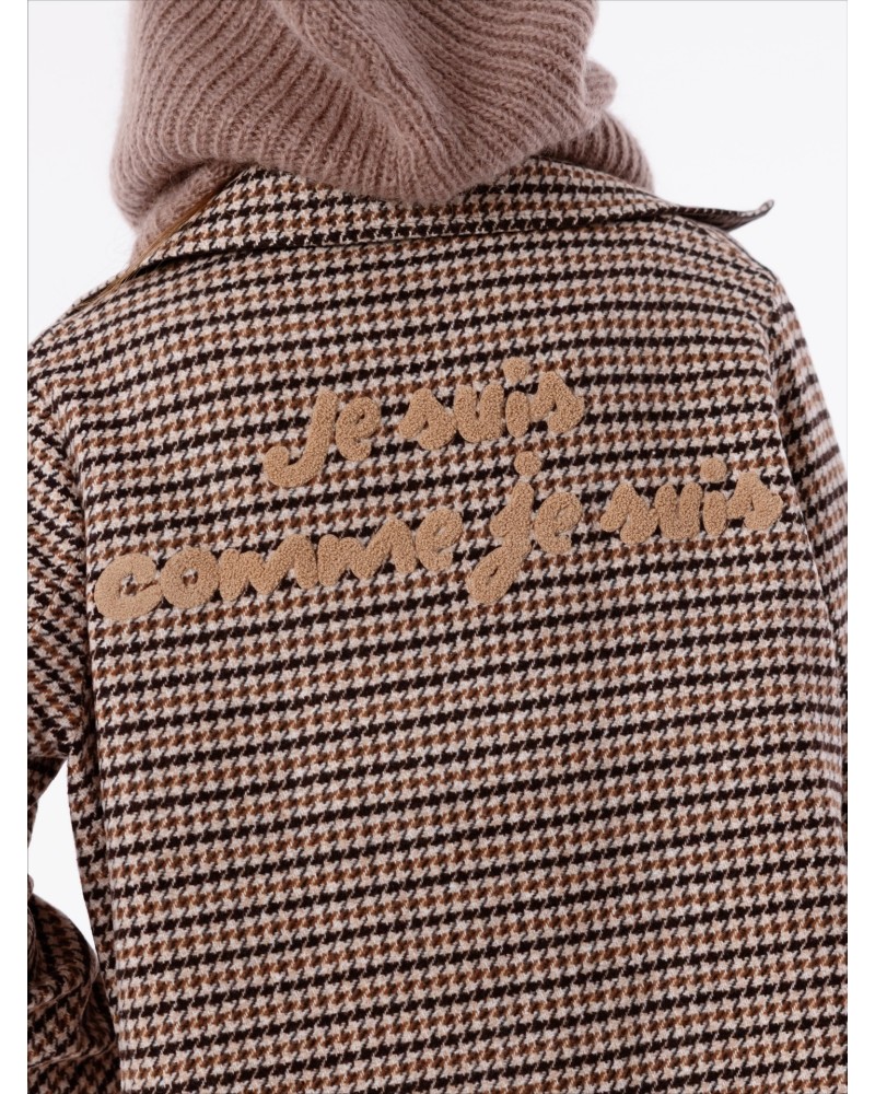 Elegancki płaszcz w pepitkę z napisem “Je suis comme je suis” to połączenie klasyki i nowoczesnego stylu. Wykonany z przyjemnego w dotyku, ciepłego materiału, zapewnia komfort i doskonałe dopasowanie w każdej stylizacji.