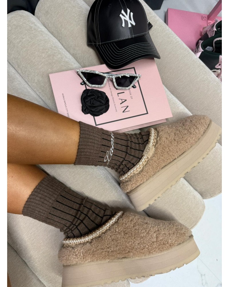 Miękkie, prążkowane skarpetki z haftem – idealne na chłodniejsze dni.