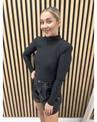 Golf posiada delikatne poduszki na ramionach, które nadają sylwetce wyraźniejszy kształt i modowy, lekko futurystyczny wygląd. Dopasowany krój podkreśla figurę, a elastyczna tkanina zapewnia wygodę i swobodę ruchów.