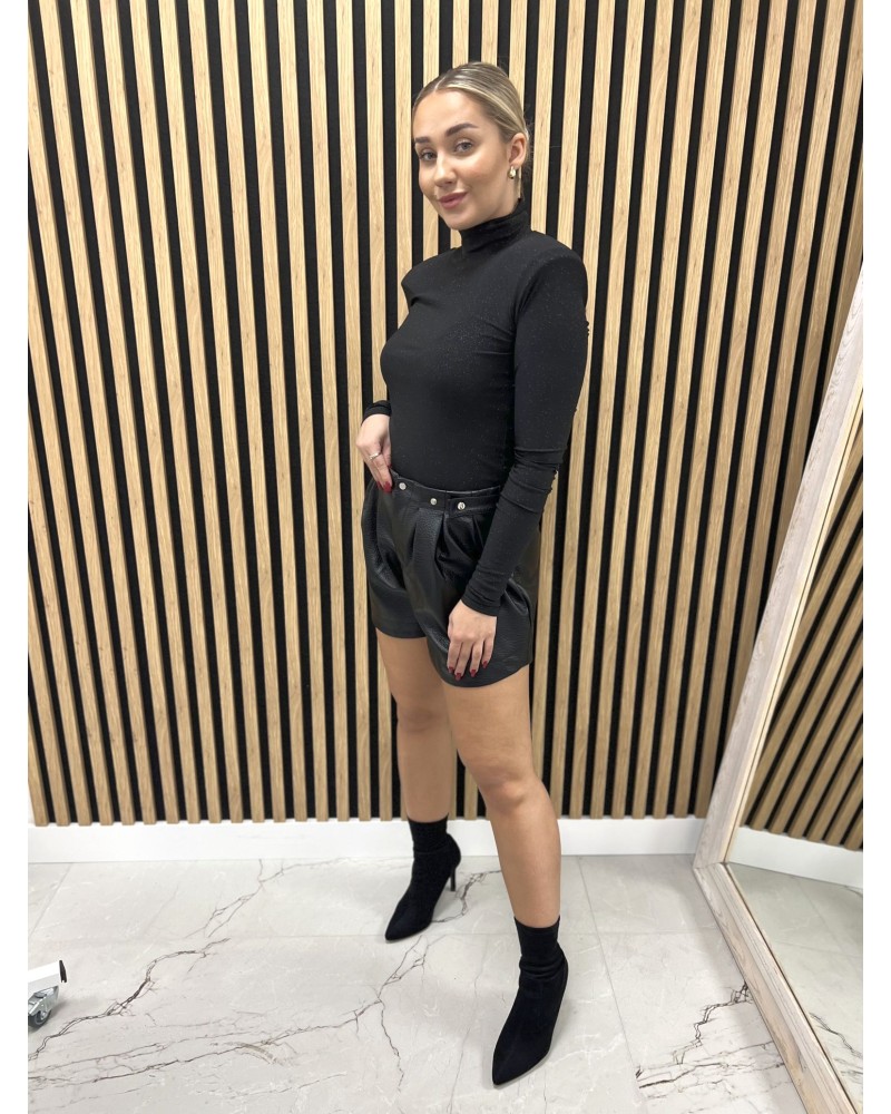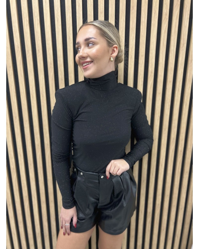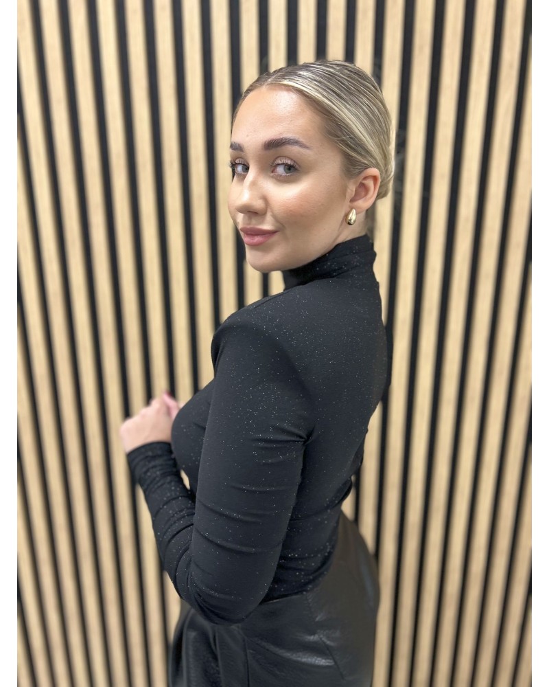Mieniący się golf z poduszkami na ramionach – elegancki i kobiecy, idealny do stylizacji na każdą okazję.