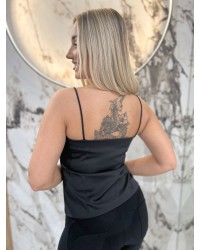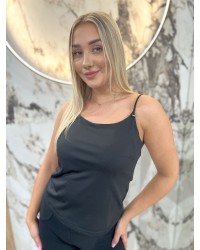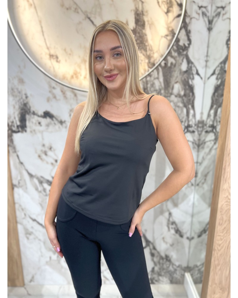 Ten klasyczny top na cienkich ramiączkach to niezbędny element każdej garderoby. Wykonany z gładkiego, elastycznego materiału, doskonale dopasowuje się do sylwetki i zapewnia komfort noszenia przez cały dzień.