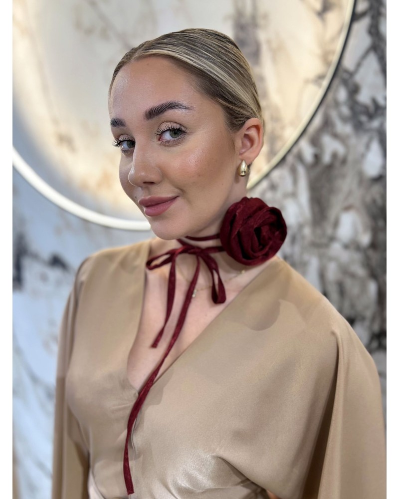 Elegancka róża na długim sznurku – stylowa ozdoba, którą możesz nosić na szyi lub w pasie. Doda romantycznego uroku każdej stylizacji.