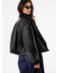 Stylowa kurtka typu pilotka to must have sezonu jesień–zima. Wykonana z wysokiej jakości ekoskóry, podszyta miękkim i ciepłym kożuszkiem, zapewnia komfort oraz ochronę przed chłodem. Model ma klasyczny, lekko oversize’owy krój, zapinany na duże guziki, z efektownym kołnierzem i mankietami z futerka.