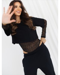 Stylowe body z kolekcji by o la la! to połączenie klasyki i zmysłowości. Góra wykonana jest z miękkiej, bawełnianej tkaniny o prostym kroju przypominającym t-shirt, natomiast dół oraz rękawy tworzy delikatna, ażurowa koronka, która dodaje całości elegancji i charakteru.