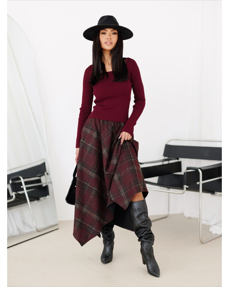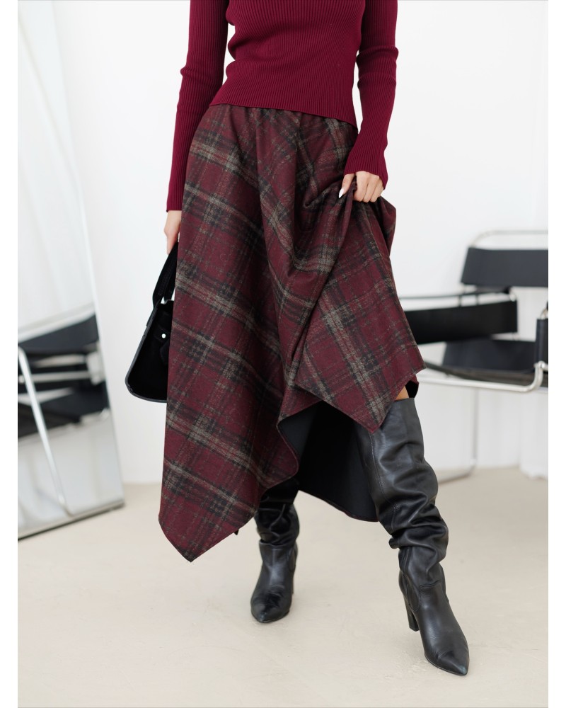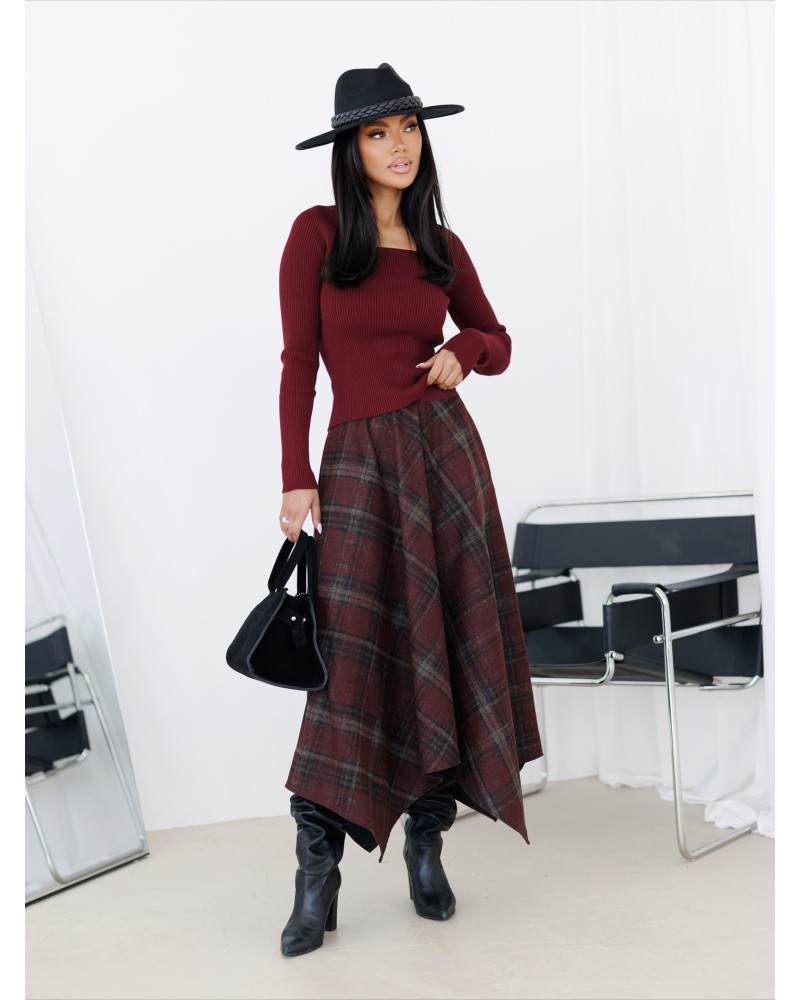 Rozkloszowana spódnica midi w kratę z elastycznym pasem. Ciepła, kobieca i idealna na jesienno-zimowe stylizacje.