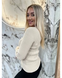 Sweterek prążkowany by o la la! to połączenie prostoty i elegancji. Wykonany z elastycznej, przyjemnej w dotyku dzianiny, doskonale dopasowuje się do ciała, podkreślając kobiecą sylwetkę.