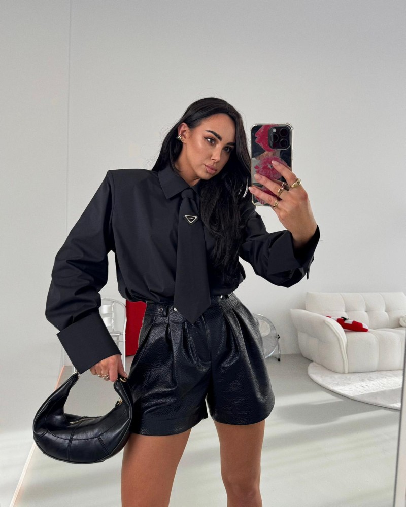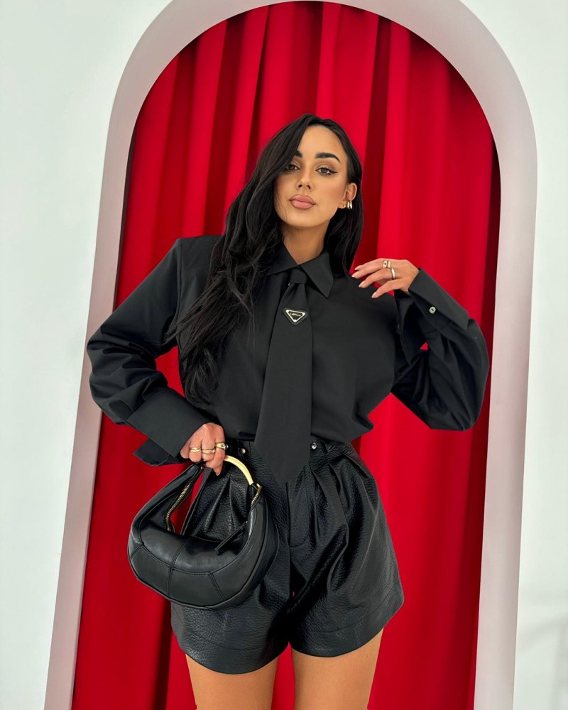 Stylowa koszula oversize z eleganckim krawatem to absolutny hit sezonu – idealna dla kobiet, które kochają modę z charakterem.
