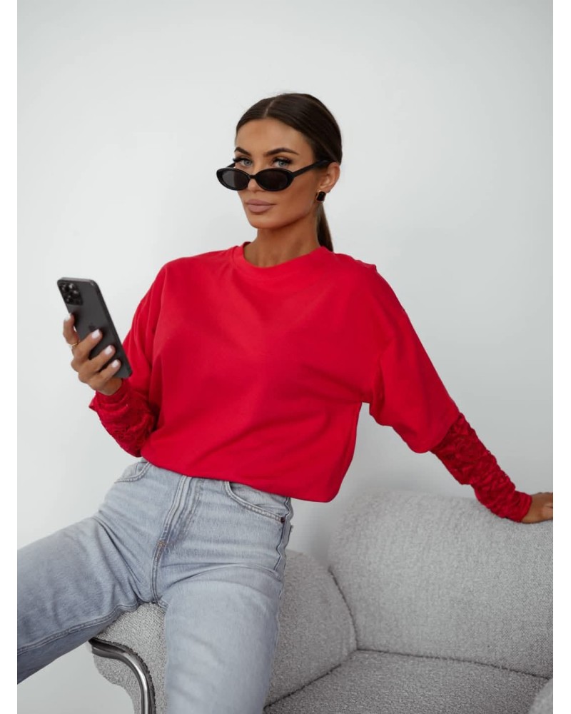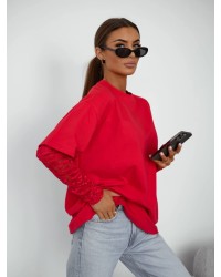Stylowy t-shirt o luźnym kroju z efektownymi koronkowymi rękawami. Połączenie casualowego stylu z eleganckim wykończeniem tworzy wyjątkowy i modny look idealny na każdą okazję.