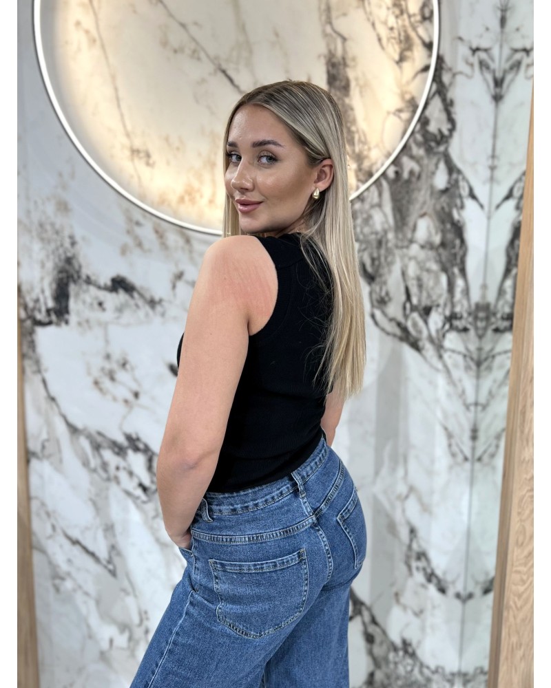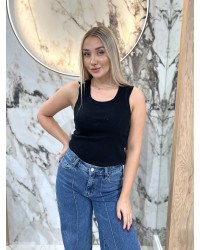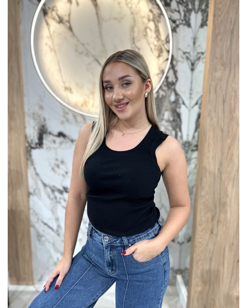 Klasyczny top na szerokich ramiączkach wykonany z elastycznego, prążkowanego materiału. Doskonała baza do codziennych i eleganckich stylizacji, idealnie dopasowuje się do sylwetki.