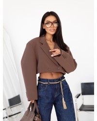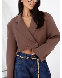 Stylowa, krótka marynarka o dopracowanym, kobiecym fasonie, która stanowi doskonałe połączenie elegancji i nowoczesności. Wykonana z wysokiej jakości tkaniny, zachowuje idealny kształt i prezentuje się niezwykle szykownie. Krótszy krój pięknie eksponuje talię i pasuje zarówno do spodni z wysokim stanem, jak i do spódnic. Klasyczny kołnierz, zapinanie na guziki i starannie wykończone detale nadają całości wyjątkowego charakteru. Doskonała propozycja do biura, na spotkanie czy wieczorne wyjście, dla kobiet ceniących elegancki minimalizm i modny wygląd.