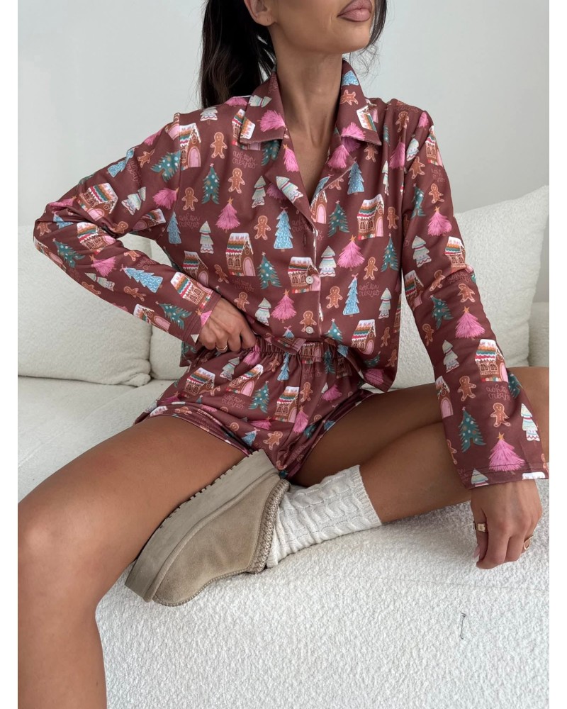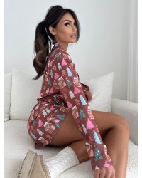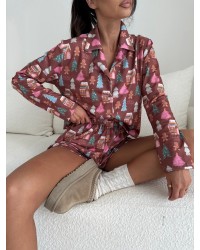 Urocza piżama dwuczęściowa stworzona z myślą o komforcie i wyjątkowym stylu. Koszula zapinana na guziki oraz krótkie spodenki z elastyczną talią zapewniają pełną swobodę ruchów i wygodę podczas snu. Wykonana z delikatnego, miękkiego materiału, który jest przyjemny dla skóry i doskonale sprawdza się o każdej porze roku. Dekoracyjny, świąteczny motyw nadaje jej niepowtarzalnego charakteru i sprawia, że to idealny wybór na zimowy czas w domowym zaciszu. Doskonała także jako prezent dla bliskiej osoby.