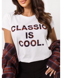 Biały T-shirt z modnym nadrukiem CLASSIC IS COOL. – ponadczasowy fason, miękka bawełna i styl, który pasuje do każdej codziennej stylizacji.