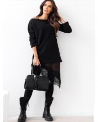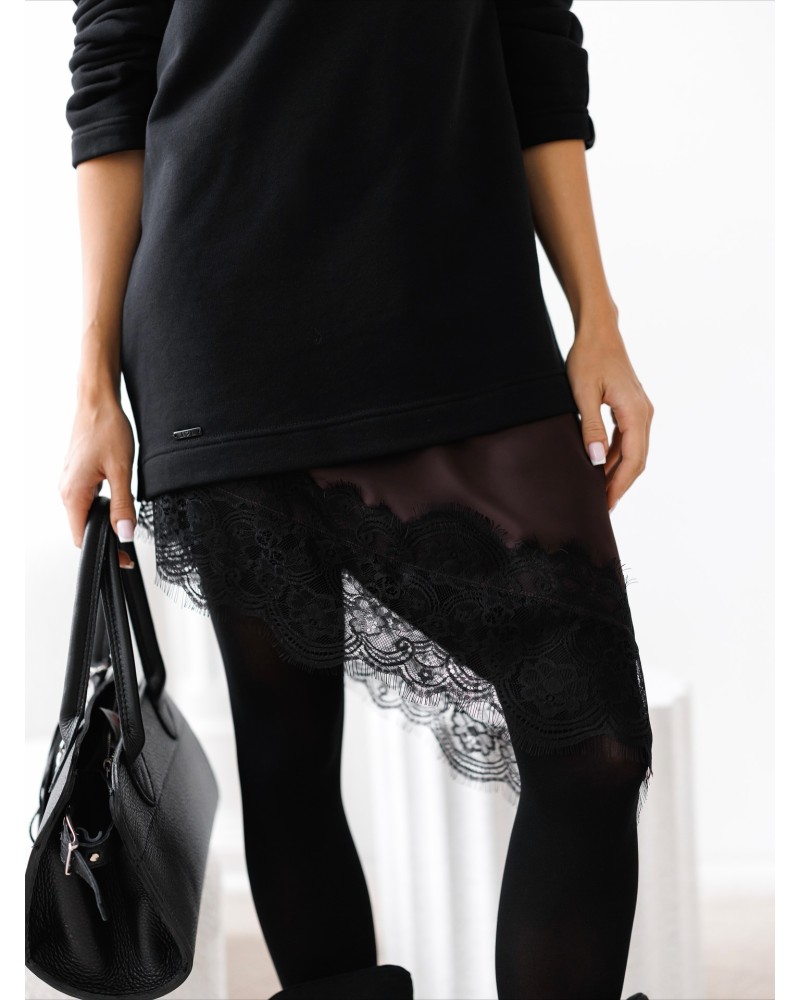 Sukienka dresowa z koronkowym dołem to idealne połączenie komfortu i subtelnej elegancji. Wykonana z miękkiej, przyjemnej w dotyku dzianiny zapewnia wygodę przez cały dzień, a jej luźny fason pięknie układa się na sylwetce, nie krępując ruchów. To model, który łączy swobodę dresowego stylu z delikatnym, kobiecym akcentem.