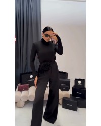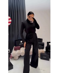 Eleganckie spodnie o szerokiej nogawce z różą w pasie, zaprojektowane tak, aby wysmuklać sylwetkę i podkreślać linię talii. Idealne do stylizacji biznesowych i wieczorowych.