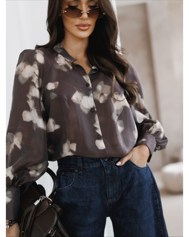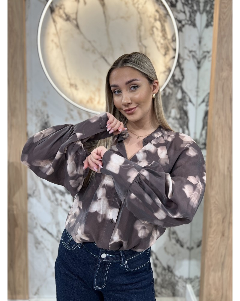 Stylowa bluzka o wyjątkowym, artystycznym nadruku, która doskonale łączy elegancję z nowoczesnym designem. Wykonana z lekkiej, przyjemnej dla skóry tkaniny, zapewnia pełen komfort noszenia przez cały dzień. Zapinana na guziki, z klasycznym kołnierzykiem typu stójka oraz szerokimi mankietami, prezentuje się niezwykle szykownie i kobieco.