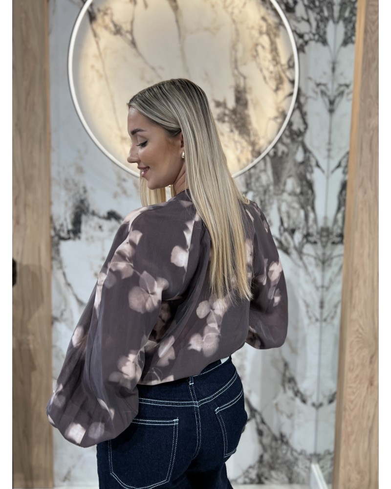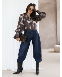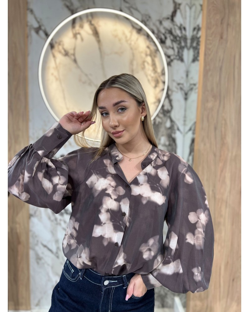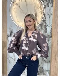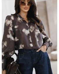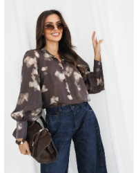 Elegancka bluzka z efektownym nadrukiem i delikatnym połyskiem. Lekki materiał pięknie układa się na sylwetce, a klasyczny krój z kołnierzykiem i mankietami nadaje stylizacji wyrafinowanego charakteru.