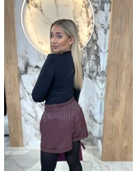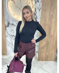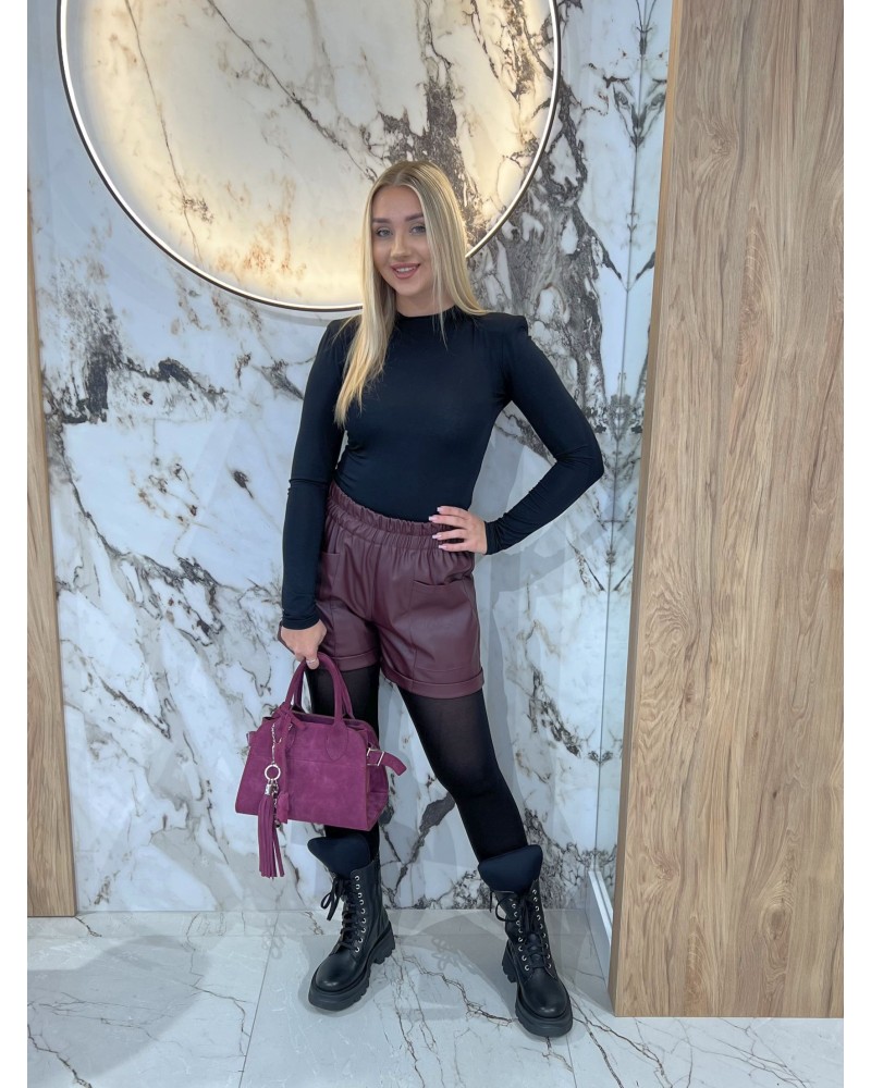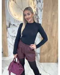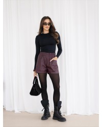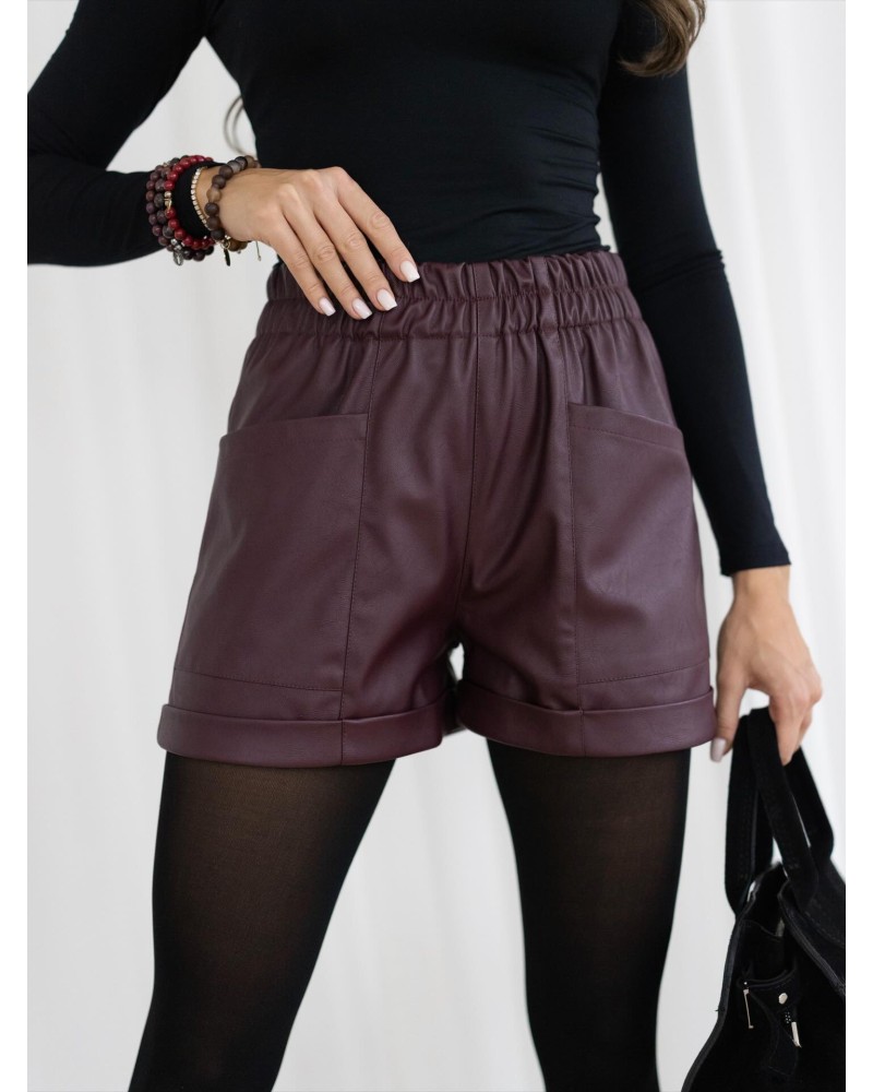 Stylowe szorty z ekoskóry z elastyczną gumką w pasie — wygodne, nowoczesne i idealne do modnych, miejskich stylizacji.