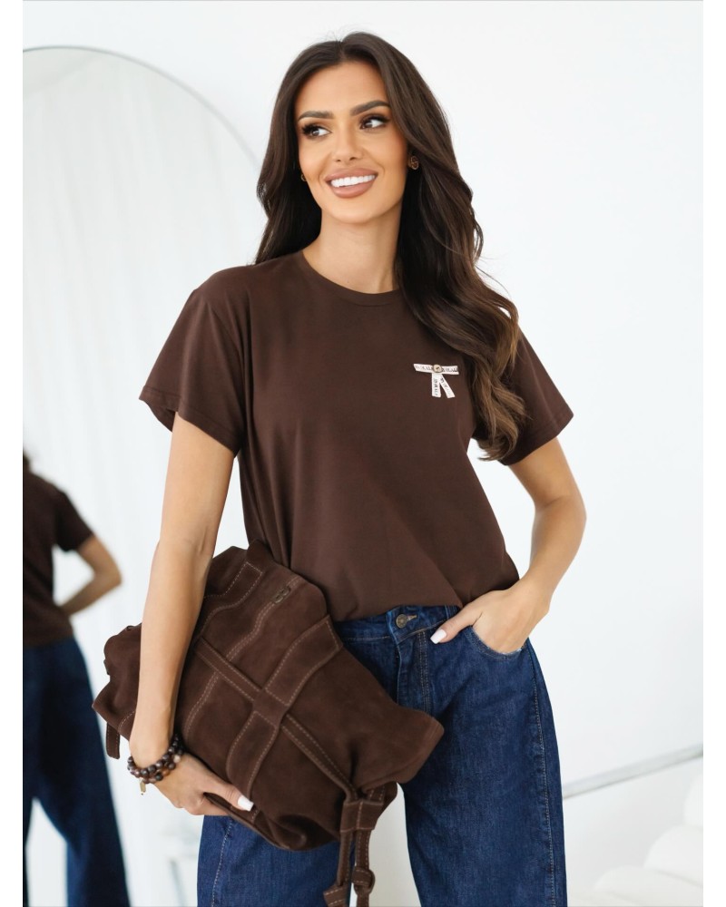 Klasyczny t-shirt z delikatną ozdobą przy dekolcie. Wygodny, miękki i idealny na co dzień — dostępny w kilku uniwersalnych kolorach.