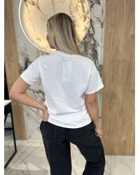 Idealne połączenie prostoty i subtelnej elegancji. Wykonany z miękkiej, przyjemnej w dotyku bawełnianej dzianiny, zapewnia pełen komfort noszenia przez cały dzień. Klasyczny krój z krótkim rękawem sprawia, że pasuje do niemal każdej stylizacji — od sportowych po casualowe, aż po bardziej kobiece zestawy.