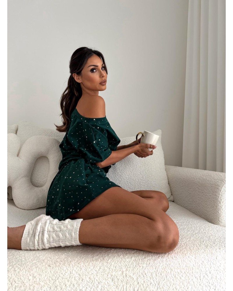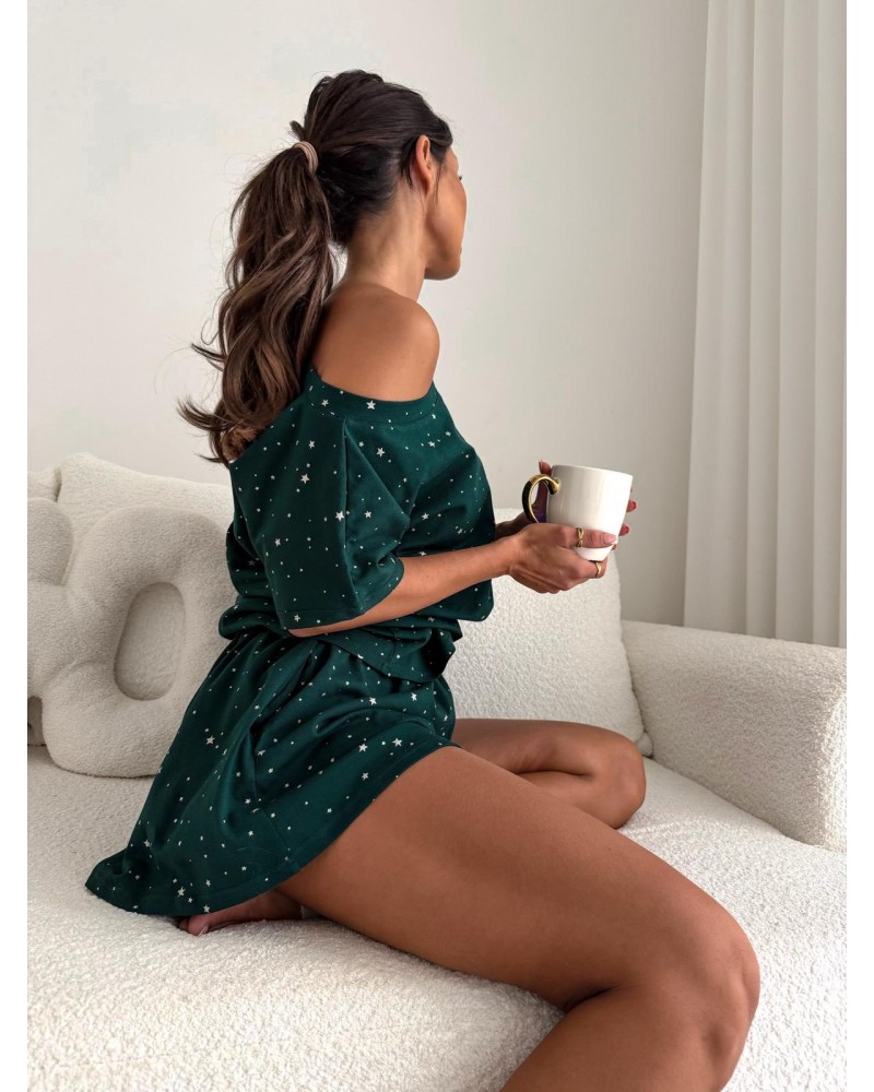 Piżama w gwiazdki Christmas Star butelkowa zieleń