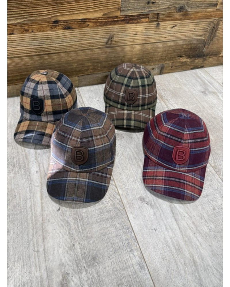Modna czapka z daszkiem w kratę z naszywką „B”. Stylowa, wygodna i idealna jako dodatek do jesienno-zimowych stylizacji.