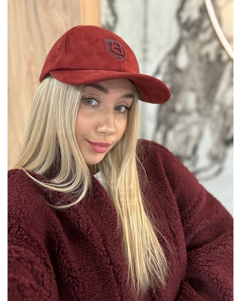 Stylowa czapka z daszkiem z miękkiego, zamszowego materiału, ozdobiona naszywką z literą „B”. Modna, minimalistyczna i idealna do codziennych stylizacji.