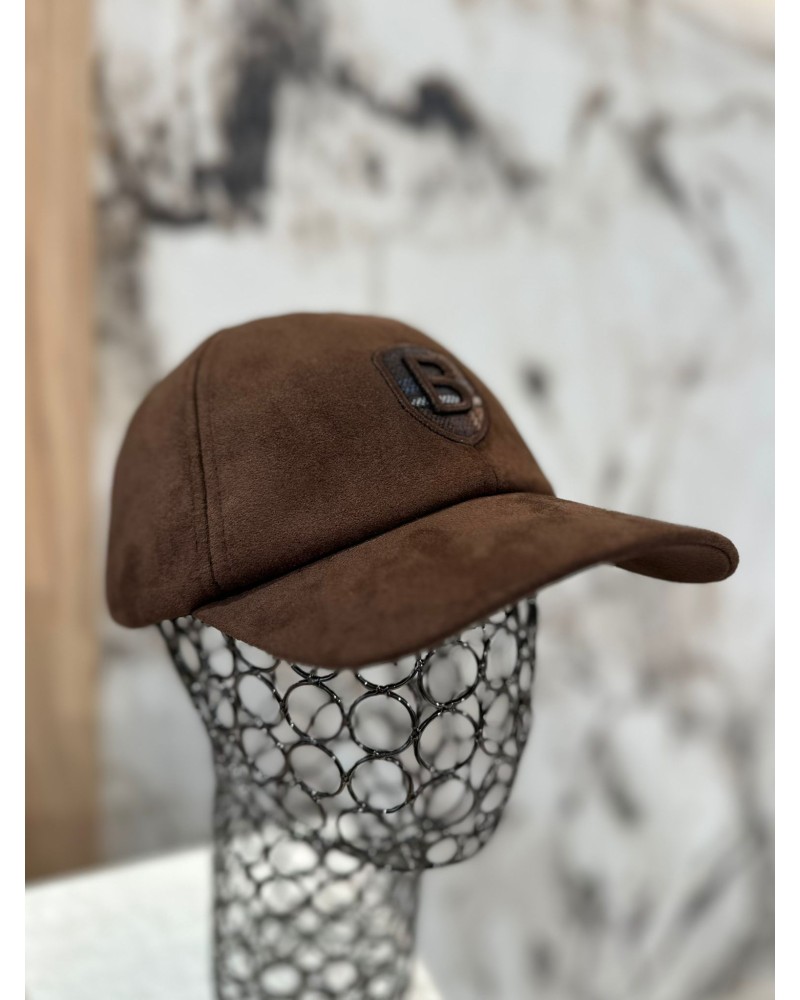 Stylowa czapka z daszkiem z miękkiego, zamszowego materiału, ozdobiona naszywką z literą „B”. Modna, minimalistyczna i idealna do codziennych stylizacji.