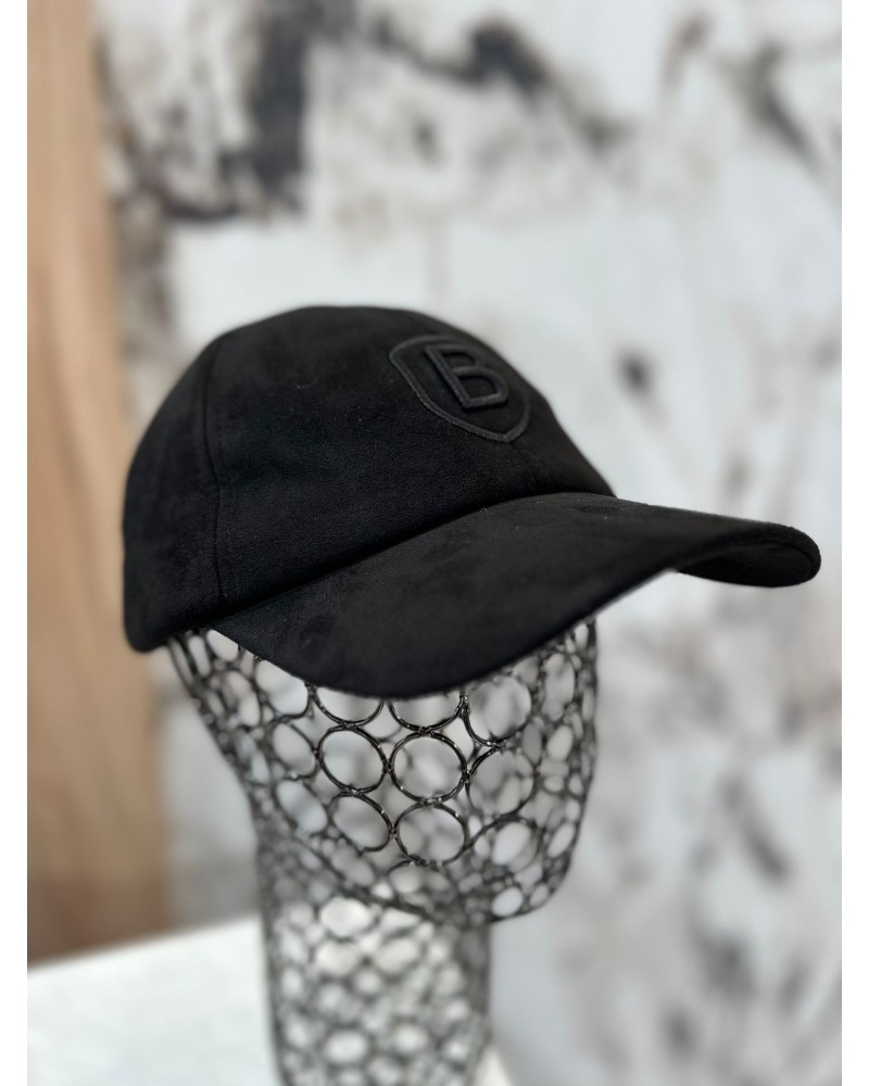 Stylowa czapka z daszkiem z miękkiego, zamszowego materiału, ozdobiona naszywką z literą „B”. Modna, minimalistyczna i idealna do codziennych stylizacji.