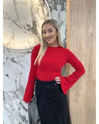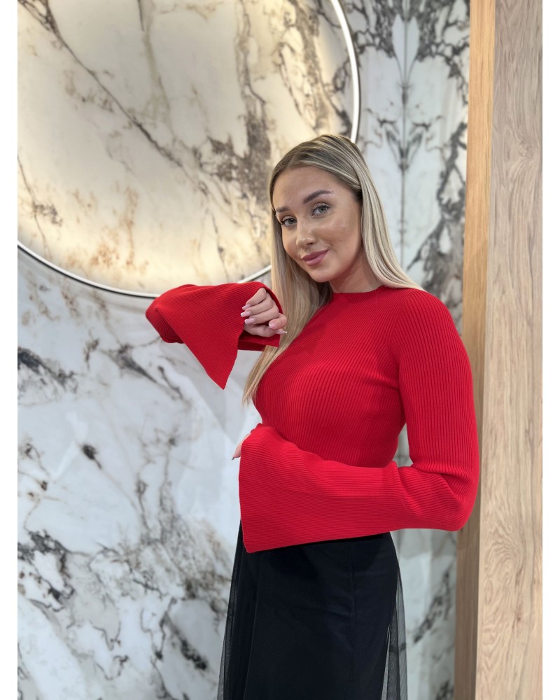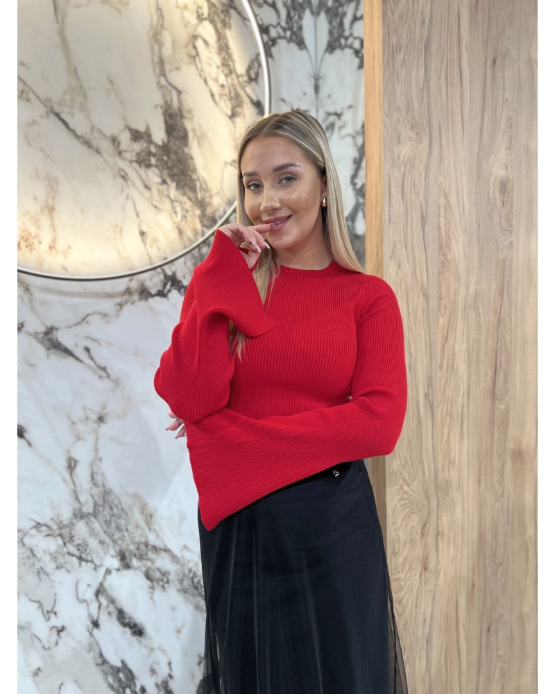 Cienki sweterek prążkowany By o la la...! czerwony