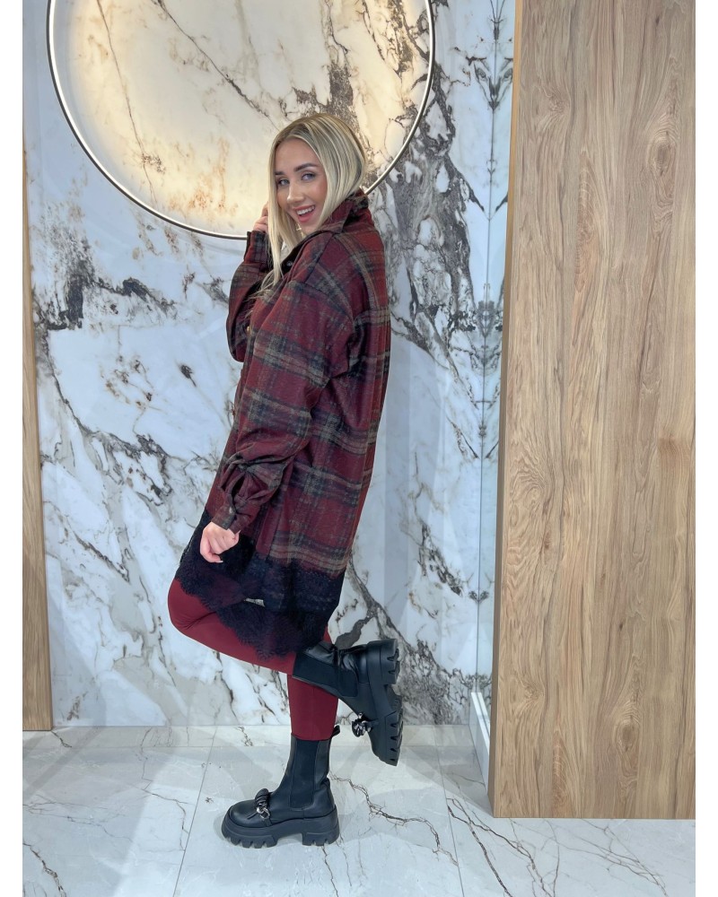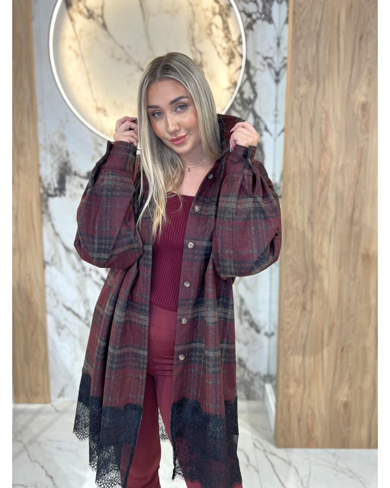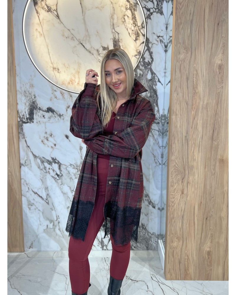 Koszula w kratę z koronkowym wykończeniem By o la la...! merlot