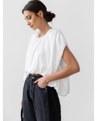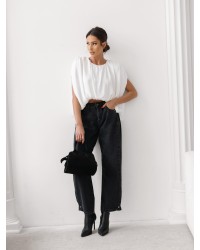Ta bluzka to połączenie subtelnej elegancji i nowoczesnego designu. Wykonana z lejącego, przyjemnego w dotyku materiału, pięknie układa się na sylwetce, tworząc delikatne, naturalne marszczenia. Jej luźniejszy krój zapewnia komfort, a jednocześnie wygląda niezwykle stylowo i lekko.