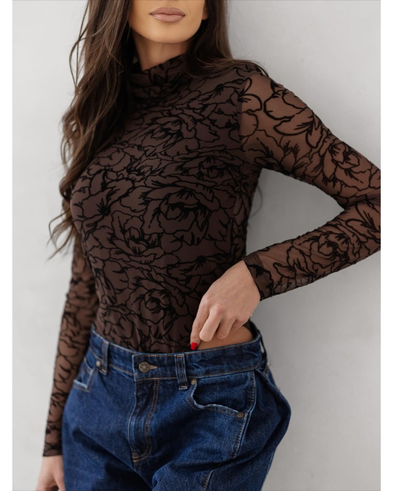 Body-mgiełka z efektownym kwiatowym wzorem to elegancka i zmysłowa propozycja na każdą okazję. Delikatny, transparentny materiał pięknie układa się na sylwetce, a dopasowany fason podkreśla kobiece kształty. Idealne do stylizacji wieczorowych, jak i codziennych w duecie z marynarką lub jeansami.