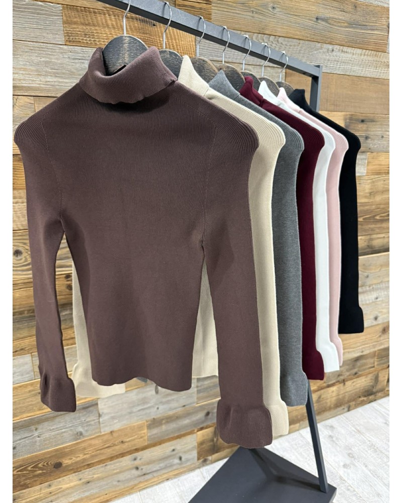 Prążkowany golf z efektownymi rękawami w kształcie dzwoneczka to stylowy i kobiecy model, który łączy klasyczną elegancję z odrobiną nowoczesnego charakteru. Idealny do codziennych i bardziej wyjściowych stylizacji.