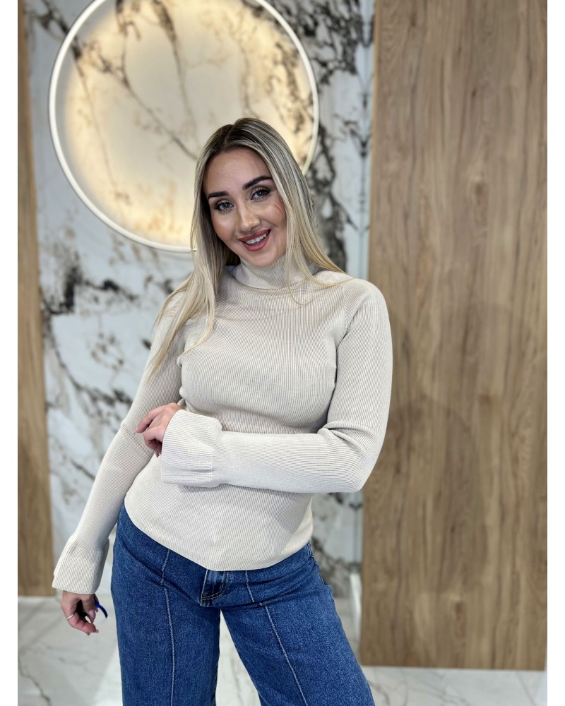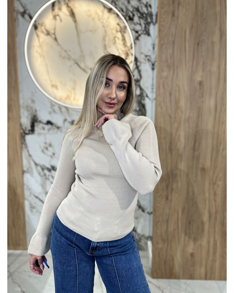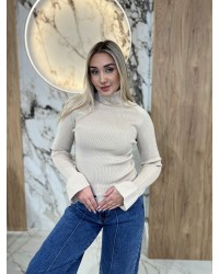 Prążkowany golf z efektownymi rękawami w kształcie dzwoneczka to stylowy i kobiecy model, który łączy klasyczną elegancję z odrobiną nowoczesnego charakteru. Idealny do codziennych i bardziej wyjściowych stylizacji.