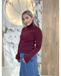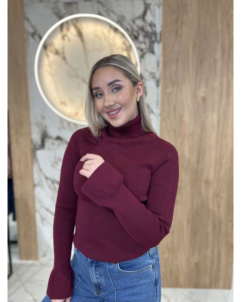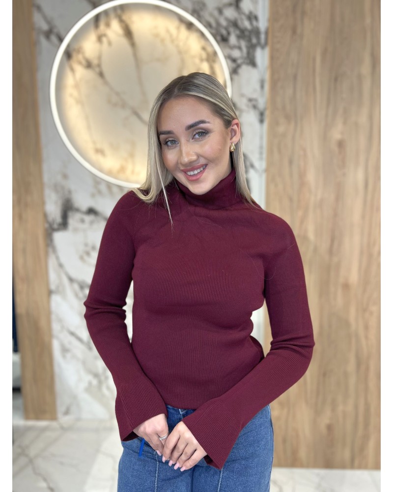 Prążkowany golf z efektownymi rękawami w kształcie dzwoneczka to stylowy i kobiecy model, który łączy klasyczną elegancję z odrobiną nowoczesnego charakteru. Idealny do codziennych i bardziej wyjściowych stylizacji.