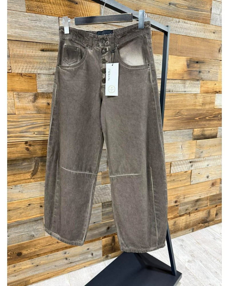 Spodnie posiadają praktyczne, duże kieszenie oraz oryginalne, wieloguzikowe zapięcie, które dodaje całości wyjątkowego wyglądu. Przeszycia na nogawkach podkreślają formę i nadają spodniom bardziej nowoczesny, designerski styl.
