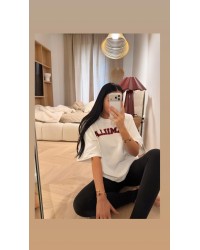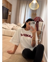 Najmocniejszym akcentem koszulki jest czerwony napis „LAMILLA” umieszczony na przodzie, który dodaje całości energii i modowego pazura. Wyrazisty, kontrastowy print sprawia, że t-shirt przyciąga uwagę i doskonale wpisuje się w aktualne trendy streetwearowe.