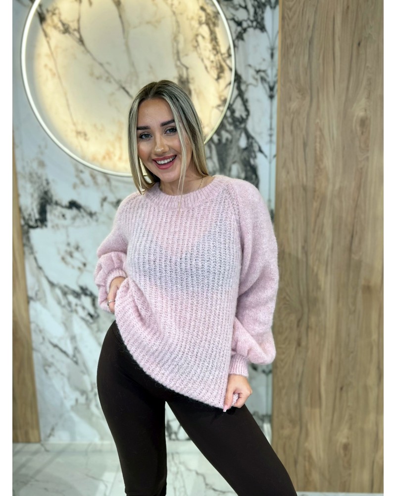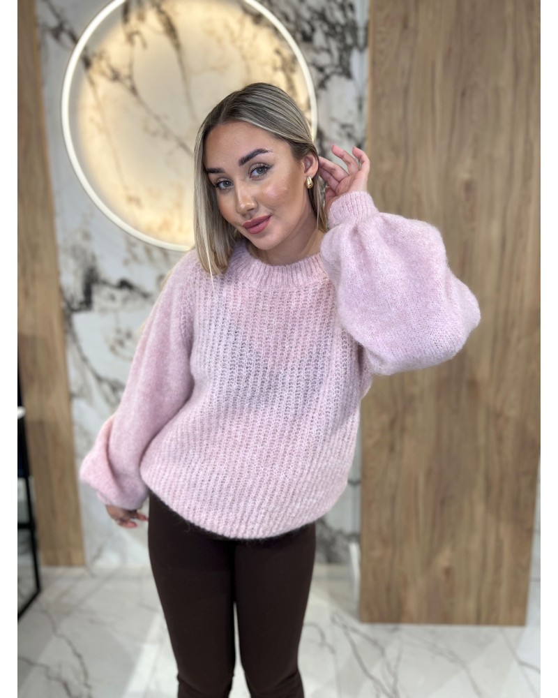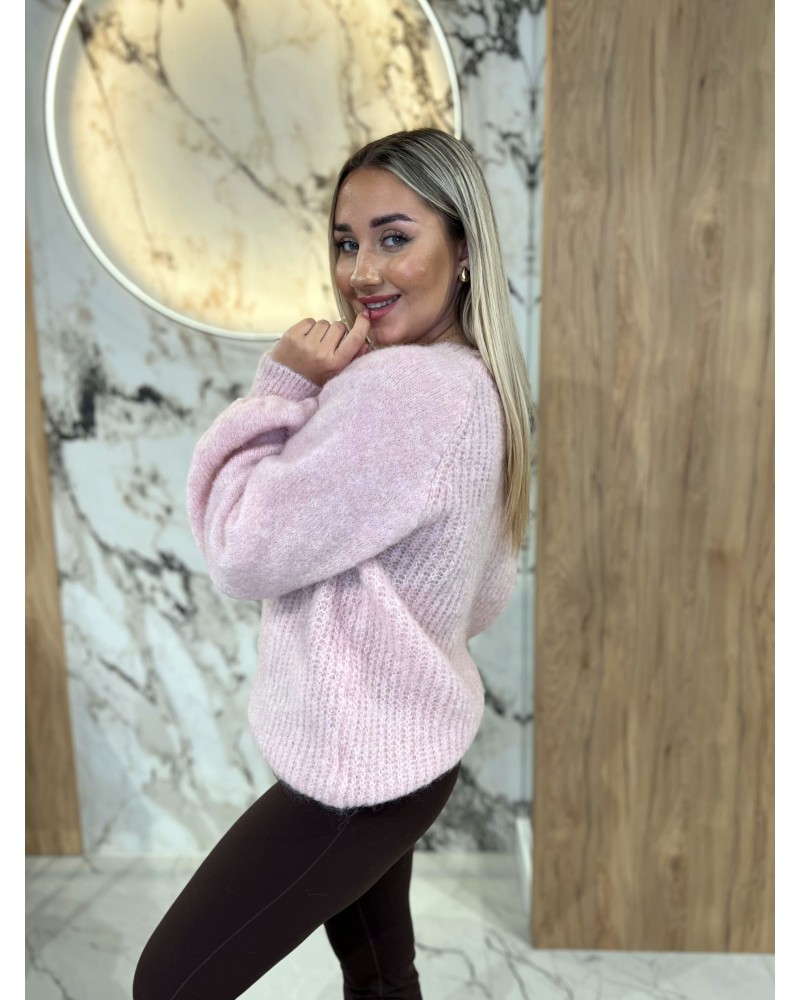 Sweter premium z bufiastymi rękawami By o la la...! pudrowy róż