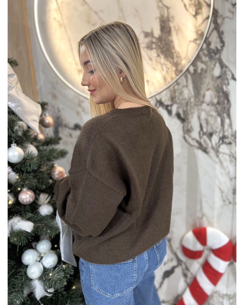 Klasyczny krój z okrągłym dekoltem i wykończeniami w formie ściągaczy nadaje swetrowi uniwersalny wygląd, dzięki czemu idealnie sprawdza się zarówno w codziennych zestawach, jak i na świąteczne spotkania. Centralnie umieszczony wzór nadaje całości oryginalny, zimowy akcent, podkreślając jego charakter.